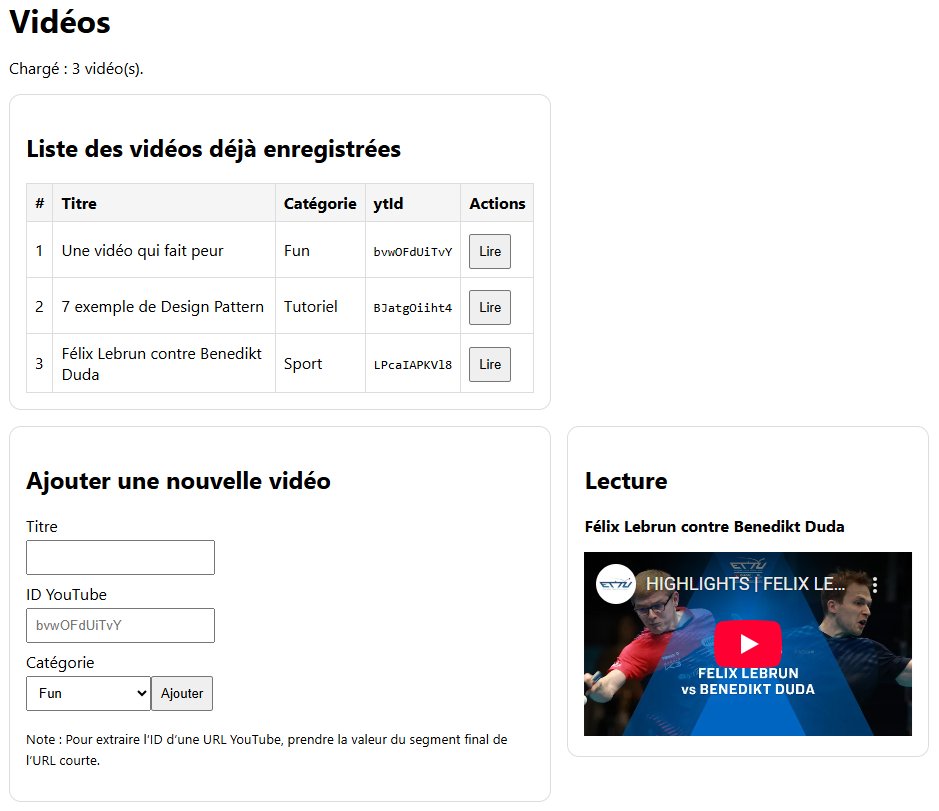 Les vidéos sur Youtube possèdent un id, par exemple pour la vidéo https://www.youtube.com/watch?v=bvwOFdUiTvY, l’id est : bvwOFdUiTvY.
