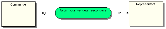 Dans notre cas, on considère qu’une commande est toujours rattachée à un représentant (il ne peut pas y avoir de commande sans représentant). On considère aussi qu’un représentant doit au minimum avoir effectué une vente donnant lieu à une commande, voire plusieurs commandes. Sincèrement, une relation 0,n côté Représentant me semblerait plus logique si l’on considère qu’une nouvelle occurrence de Représentant n’est pas obligatoirement rattachée à une occurrence de Commande. Comment un nouvel embauché pourrait-il être rattaché à une commande sans avoir pu effectuer une vente ?