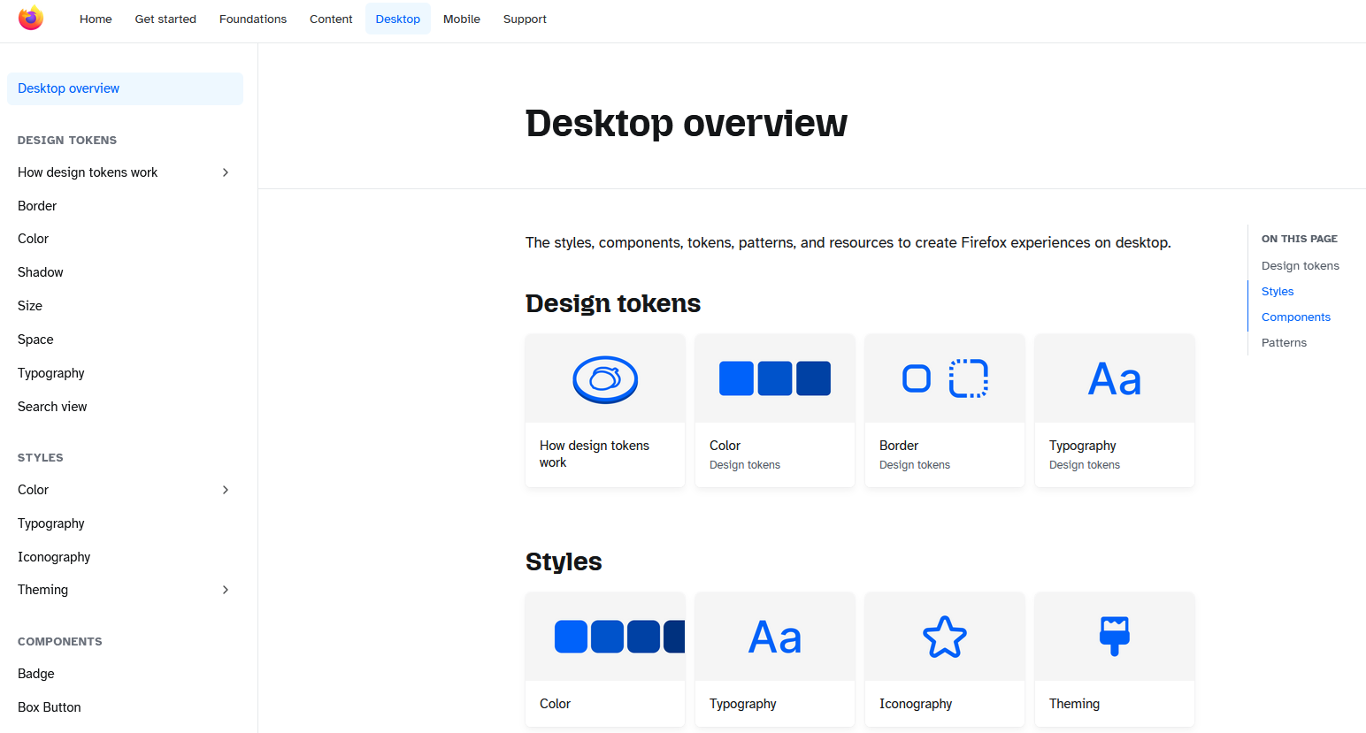 Exemple 1 : Photon Design System de Mozilla (utilisé pour Firefox).