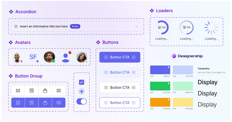 Un Design System est une bibliothèque de composants réutilisables (boutons, formulaires, cartes, etc.) associée à des règles d’utilisation (guides de style, conventions de nommage, charte graphique,…).