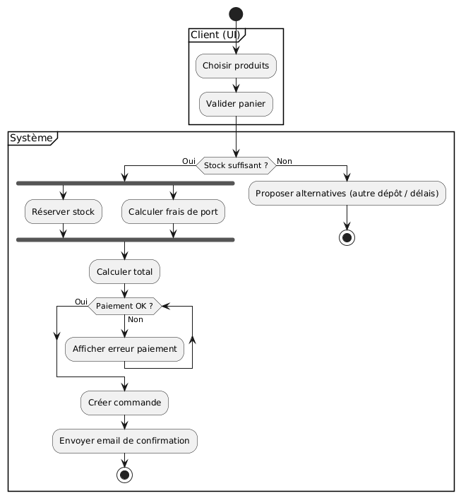 Exemple “Commander en ligne” avec rôle, parallélisme et décisions