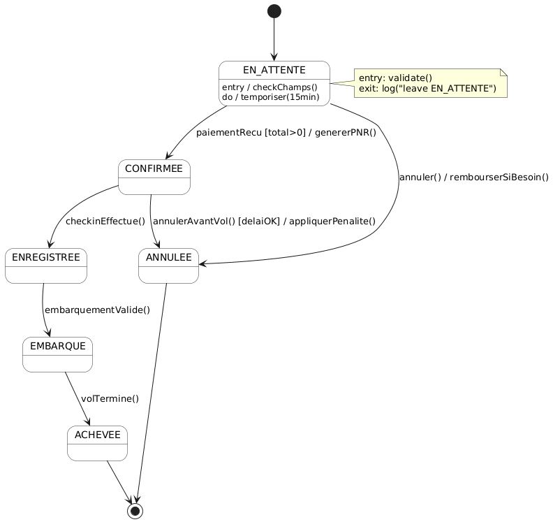 But : Décrire le cycle de vie d’un objet : états stables + événements + transitions avec gardes/actions.