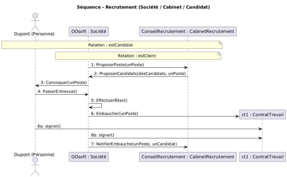 Ce premier scénario décrit le recrutement d’un développeur en JavaEE par la société Objet SA qui s’adresse à France Travail.