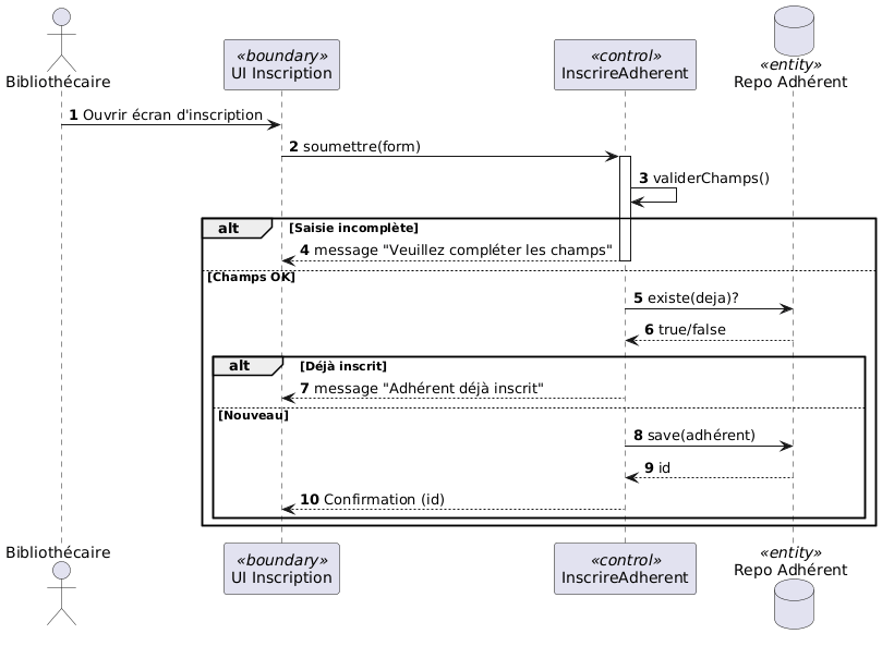Ou bien sous la forme d’un diagramme de séquence mais en numérotant les messages (méthodes)