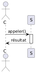 Les rectangles sur les barres verticales sont des blocs d’opérations qui montrent les périodes d’activité des objets. Les retours de messages ne sont indiqués que s’ils augmentent la compréhension du modèle.