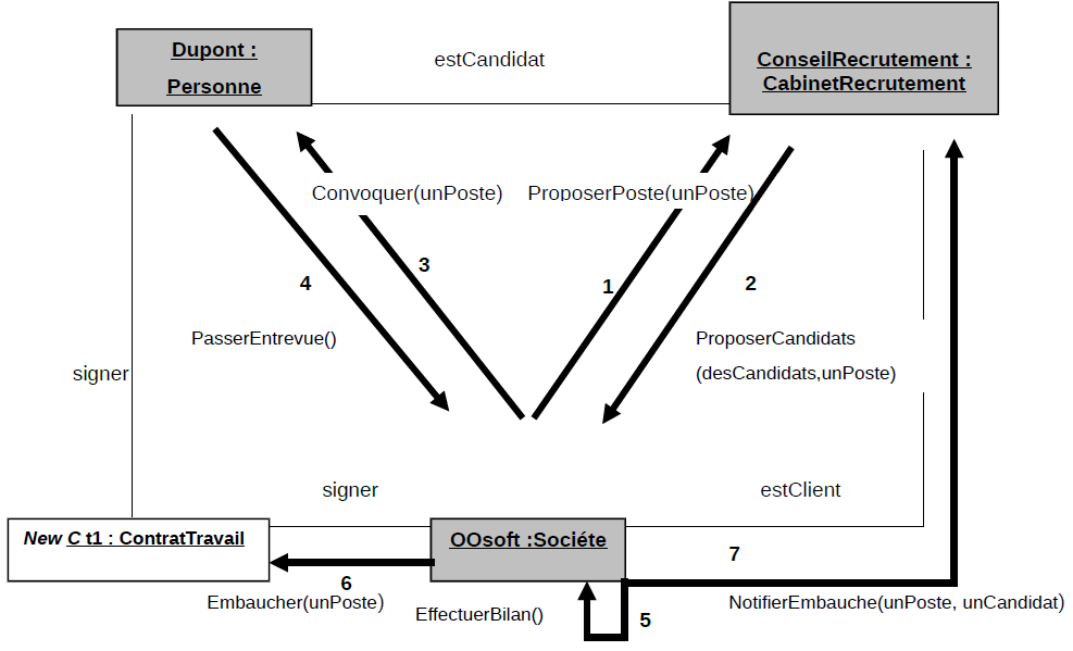 Le message 6 entre Oosoft et Dupont va générer un Nouveau contrat de travail (New ContratTravail).