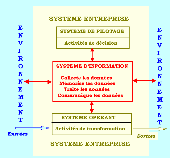 Note : Il faut se souvenir qu’un SYSTÈME D’INFORMATION est plus qu’un système informatique avec lequel il ne doit pas être confondu. Rappelons que le SI d’une organisation est l’ensemble des éléments chargés de STOCKER et TRAITER les informations (ordinateurs, postes de travail, règles et méthodes).