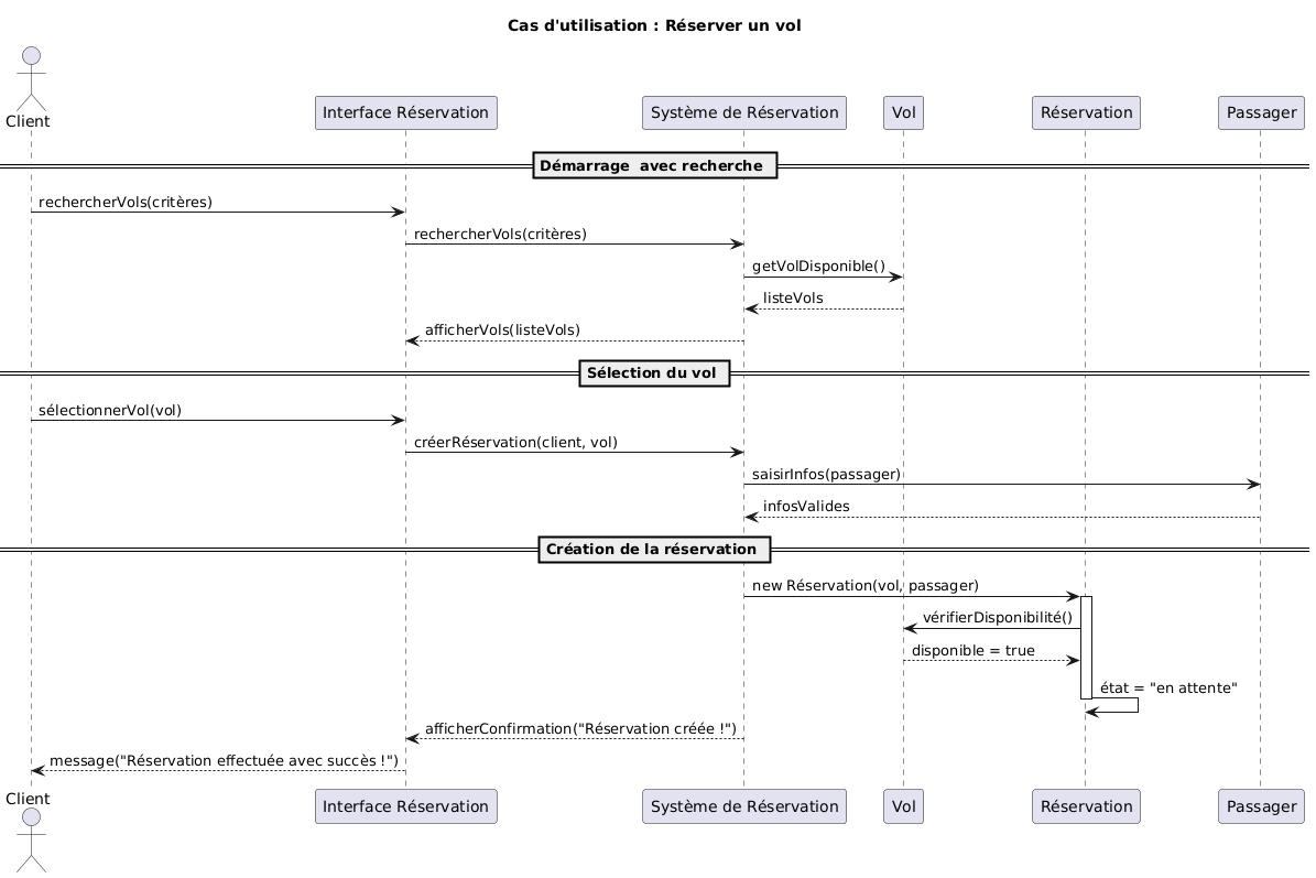 title Cas d'utilisation : Réserver un vol (Sequence)