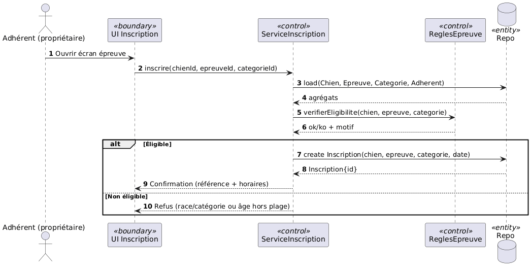 Inscrire un chien à une épreuve (vérifications race/catégorie)