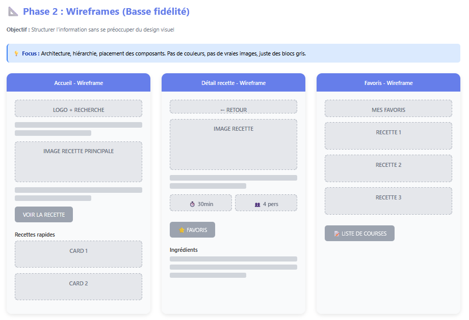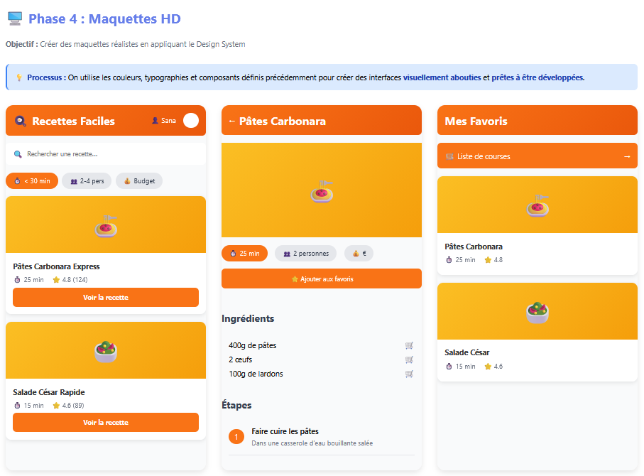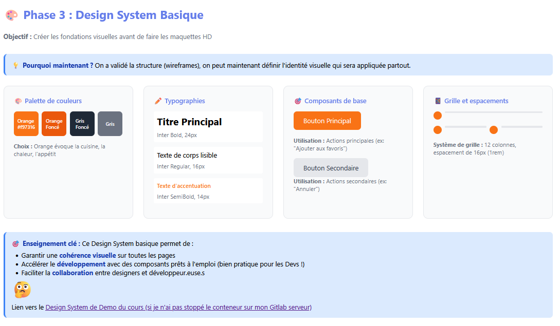 (*) vous pouvez inclure une palette de 3 à 4 couleurs, 2 tailles de typo, 3 états de vos boutons, un système d’espacements mais pas plus car il faudrait davantage de temps.